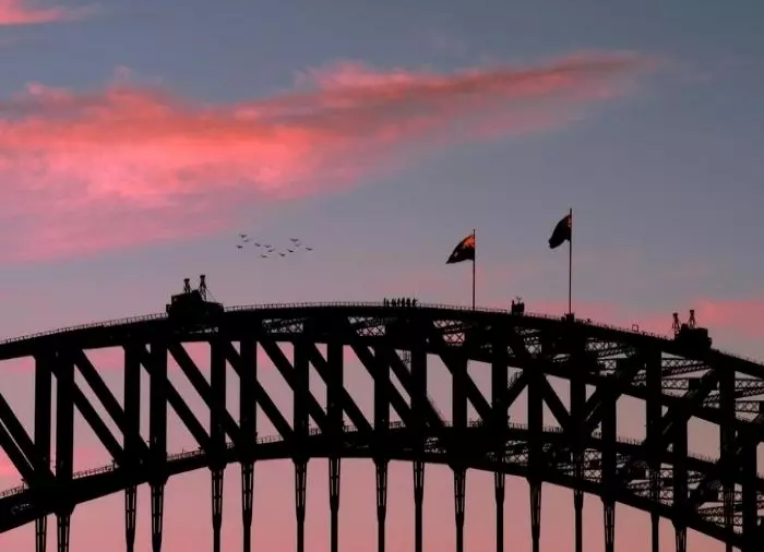 De gør det for udfordringen – tænk sig at have stået på toppen af verdens største stål-hængebro!De gør det for suget i maven, når de står under det australske flag på toppen af broen.