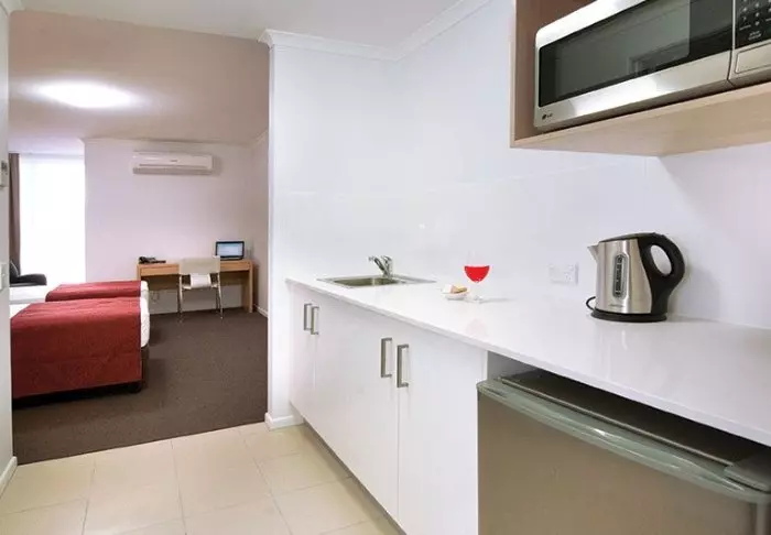 The Edge Apartment Hotel ligger i Rockhamptons bymidte lige ned til Fitzroy-floden, der snor sig igennem byen. Hotellets værelser er indrettet i moderne og enkel stil og fungerer som det ideelle tilflugtssted efter en begivenhedsrig dag. Hvert værelse er udstyret med en række faciliteter, der sikrer dig et behageligt ophold, herunder et lille tekøkken med basale fornødenheder såsom mikroovn, brødrister, mini-køleskab og service. Derudover tilbyder hotellet Wi-Fi, fladskærms-tv, strygejern og strygebræt, aircondition samt et tilhørende badeværelse med hårtørrer og diverse gratis toiletartikler. Som udgangspunkt bor du i et studieværelse, men det er muligt at opgradere til større værelser, hvor der er en ekstra stue samt balkon.