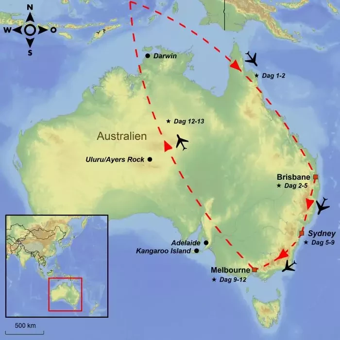 Rejsen går til Australiens tre største byer; Brisbane, Sydney og Melbourne.