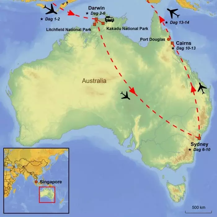 Glæd dig til et stop i skønne Singapore, inden du fortsætter til Australiens store kontraster. Down Under venter både Melbourne og Sydney og den røde ørken, inden du slutter af i tropiske Cairns.
