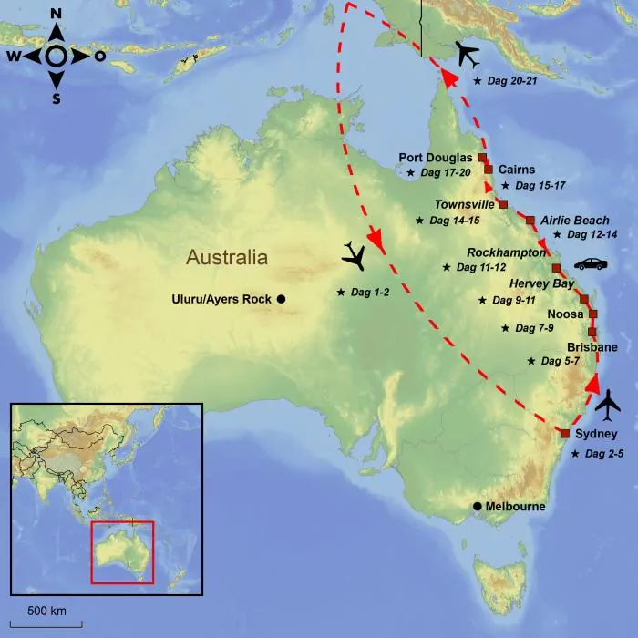 Rejsen starter i Sydney, hvor du selvfølgelig oplever byens højdepunkter som Operahuset, Darling Harbour, The Rocks og Bondi Beach.