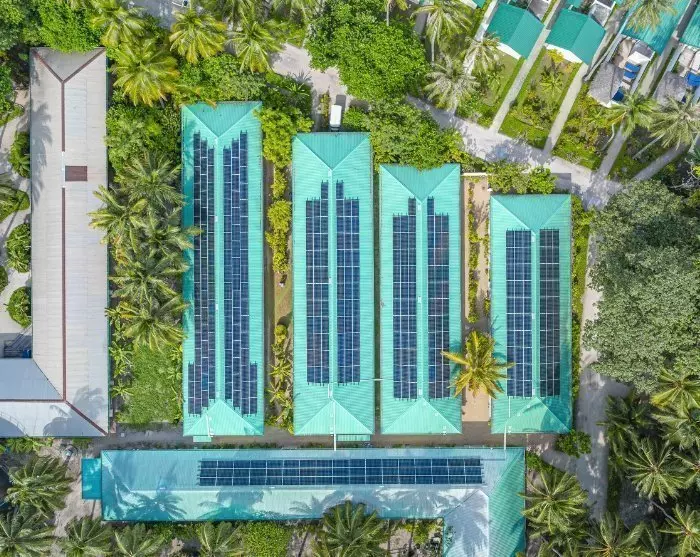 Meeru investerer også i energieffektive løsninger for at minimere sit CO₂-aftryk. Løsninger som LED-lys og moderne airconditionanlæg udnytter restvarme til opvarmning af vand, og en gradvis udskiftning til “inverter-teknologi” reducerer strømforbruget markant. Resortet har desuden indført solpaneler, der skal mindske brugen af fossile brændstoffer.