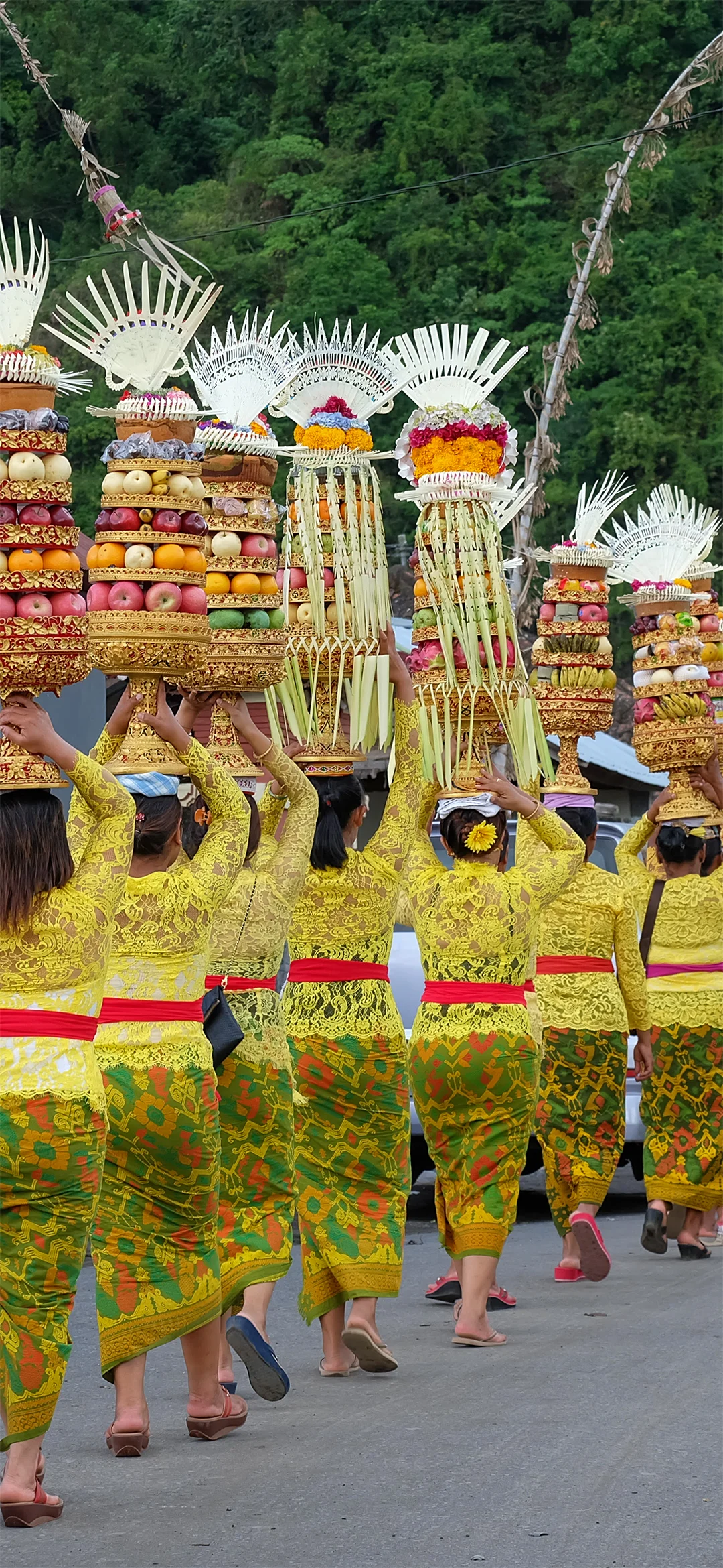 Ubud er en dejlig by med en helt særlig charme og atmosfære. Religion og traditioner dyrkes helhjertet og i gader og stræder udspilles ofte ceremonielle optog, hvor du kan opleve de balinesiske hinduister, klædt i hvidt, gå med store kurve med frugt og blomster på vej til templerne. Det er en utrolig smuk og stemningsfuld oplevelse at overvære.