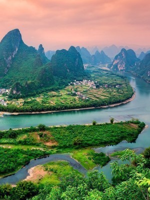 Regionen er afgrænset på den ene side af den smukke Li-flod, som huser flere små landsbyer langs bredden.