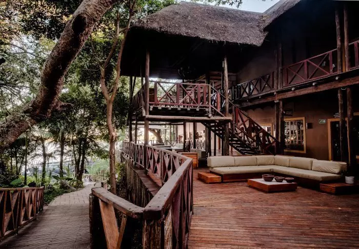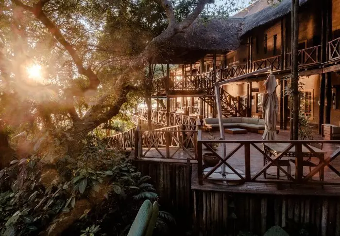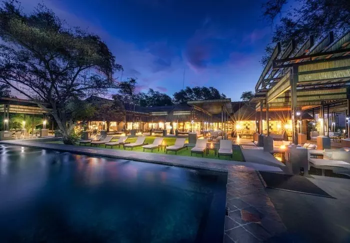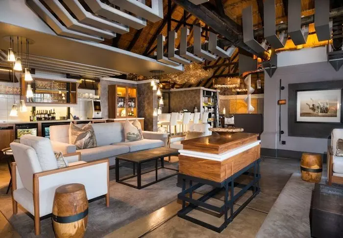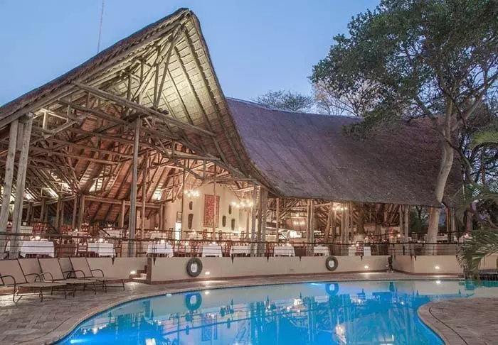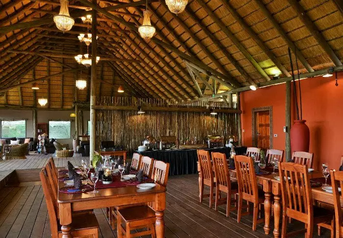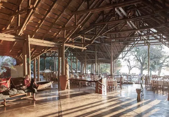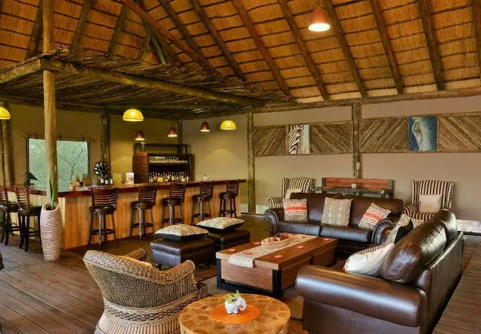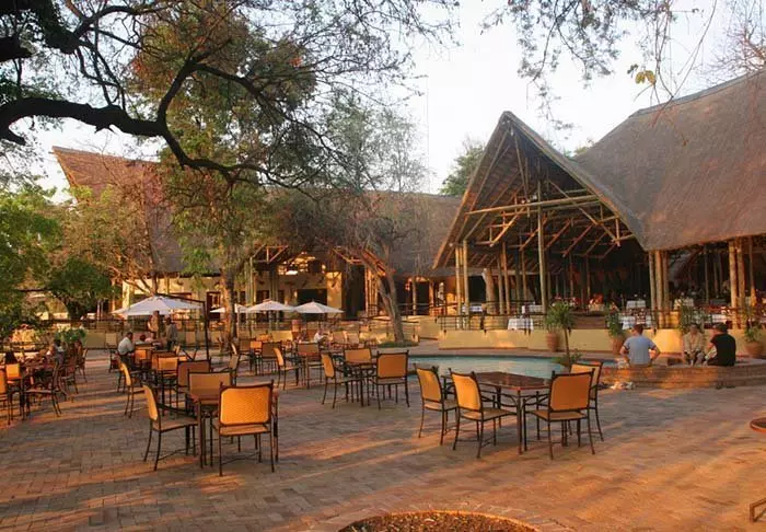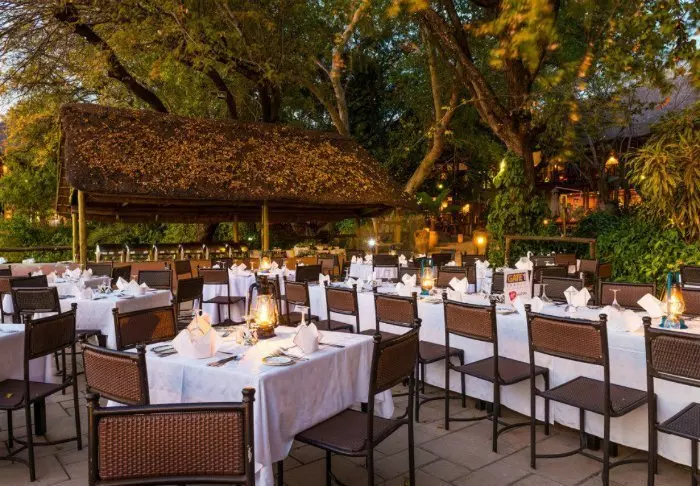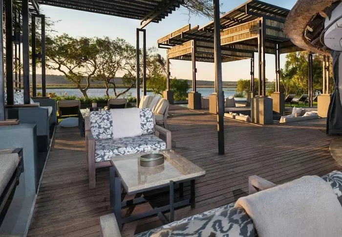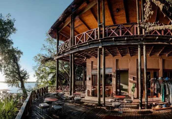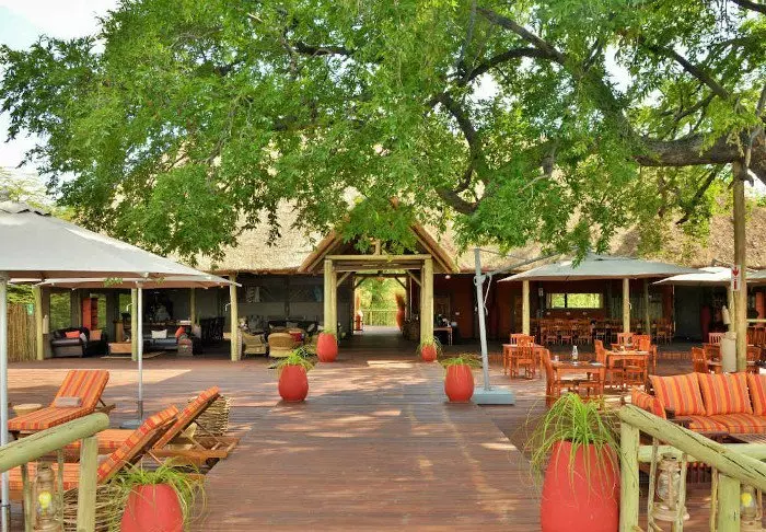 Lodgen har to restauranter, spa og to barer, hvoraf den ene er perfekt til en ”sundowner” med udsigt til floden og solen, der går ned over nationalparken.