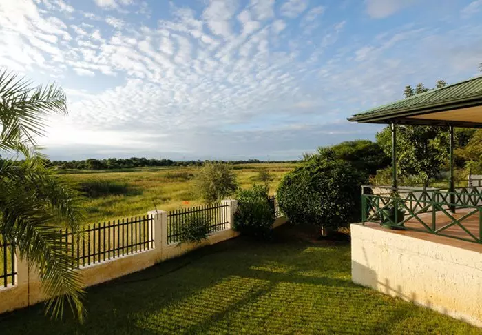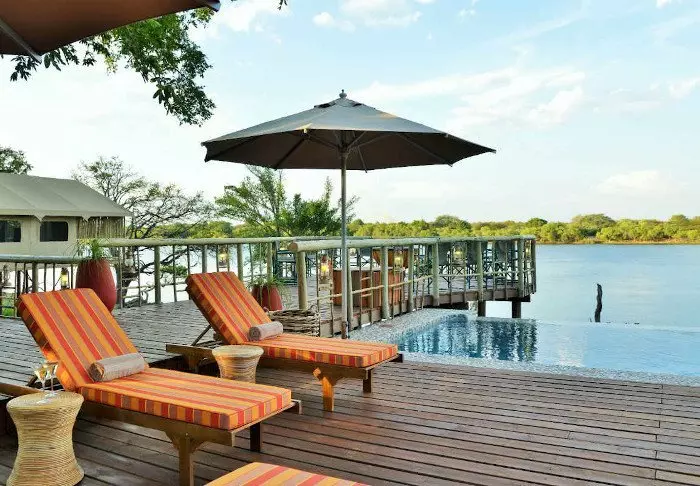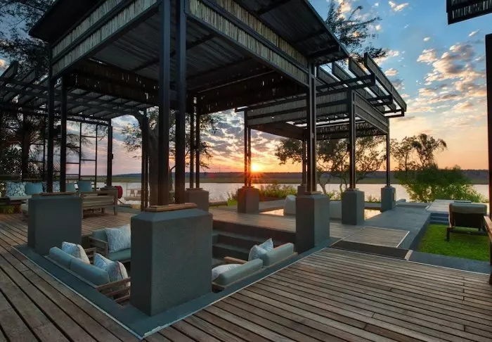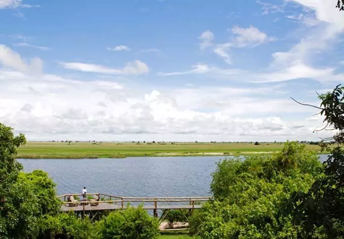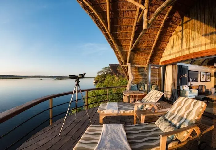 Alle 15 villaer er bygget på pæle ud over Chobe-floden. Fra de store balkoner er der en enestående udsigt til floden og den store ø Sedudu, som ligger midt i floden. Du behøver faktisk ikke flytte dig fra din terrasse, mens du er her. Dagen lang kan du sidde her og betragte livet på floden. Elefanter, der bader; både, som kommer forbi med turister; flodheste, der plasker og fugle, som sætter sig på terrassens rækværk. Bliver du tørstig, kan du lige smutte ind til din egen minibar, der er fyldt op med kolde drikke.