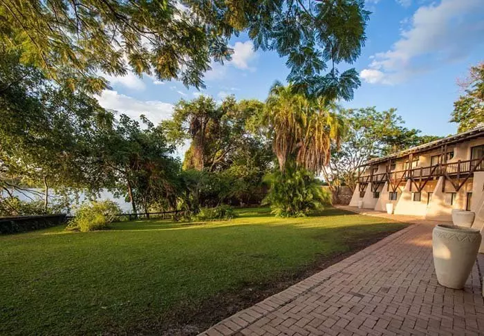 Midt i Kasane by i gåafstand til butikker, banker og supermarkeder og kun få minutters kørsel fra indgangen til Chobe National Park finder man den dejlige 4-stjernede lodge, Chobe Marina Lodge.