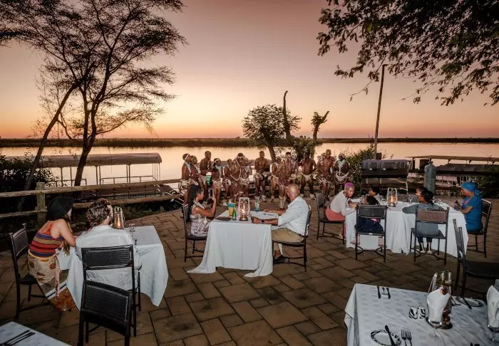 På den pragtfulde terrasse med udsigt til Chobe River kan du nyde din morgenmad under de skyggefulde træer, inden du begiver dig afsted på dagens oplevelser. Det unikke ved safarioplevelser i Chobe National Park er, at man her både har mulighed for traditionelle gamedrives på land, men også har mulighed for at opleve naturen og dyrelivet fra vandsiden på et cruise på Chobe floden.