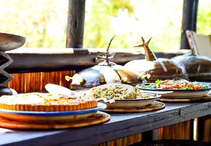 Lodgen har egen restaurant, som serverer lækre nationale og internationale retter og vegetarmad.