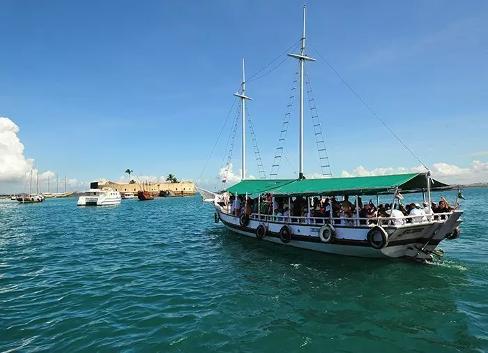 Tag med på en smuk bådtur i bugten, Baía Todos os Santos, og oplev de smukke strande ved øerne Frades og Itaparica.