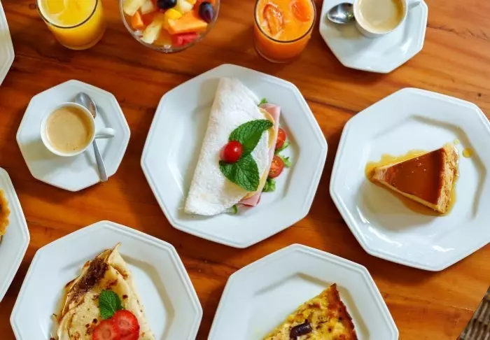Morgenmaden serveres i den lille morgenmadsrestaurant.