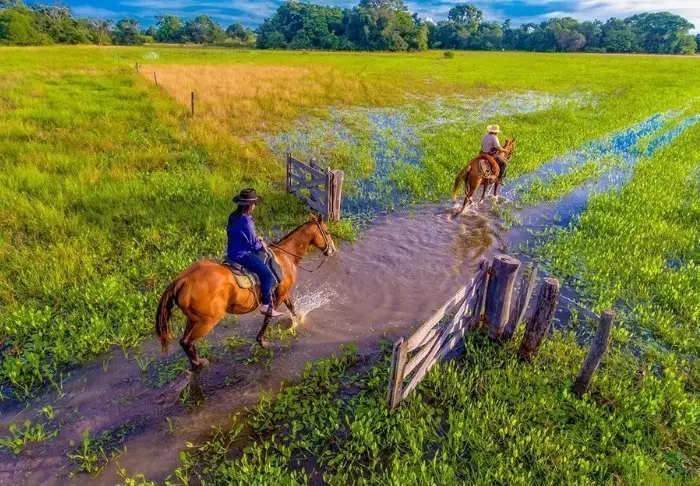 Pousada Pequi ligger i det sydlige Pantanal og er, som de fleste lodges i Pantanal, en ”working farm” med både køer og heste, drevet af en lokal familie.