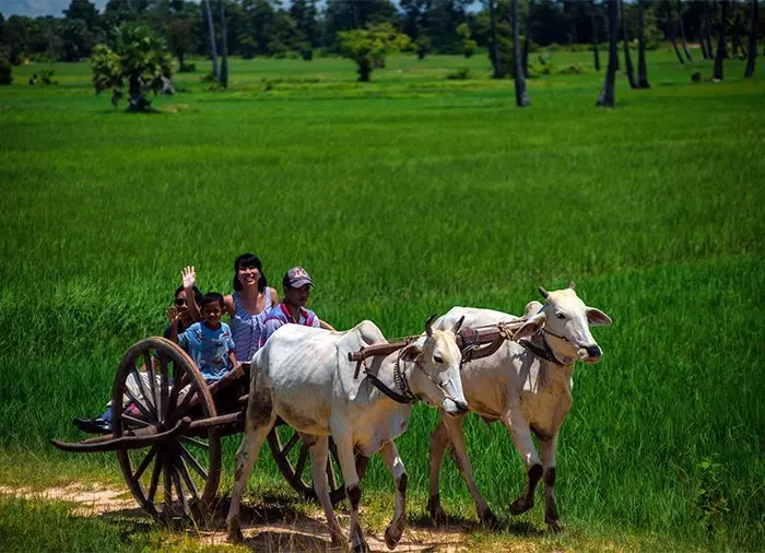 Båden fortsætter til den lille landsby Chansar, hvor du skifter båden ud med oksekærrer, og får en sjov bumpende tur gennem marken hjem til en lokal khmer familie, som lever af at lave koste. Du får lov at se, hvordan de laver kostene, og du må også gerne selv deltage i fremstillingen af en.