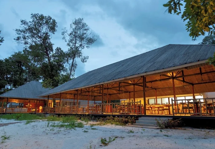 Det lille resort med bare 26 værelser ligger i stille og rolige, grønne omgivelser på den lille frodige og bilfri ø Koh Trong. Øen troner smukt midt i Mekong-floden bare 10 minutters sejlads fra Kratie by. De små smukt dekorerede træhuse i traditionel cambodiansk stil ligger spredt i en tropisk have.