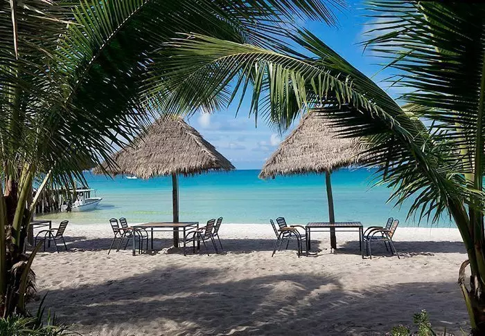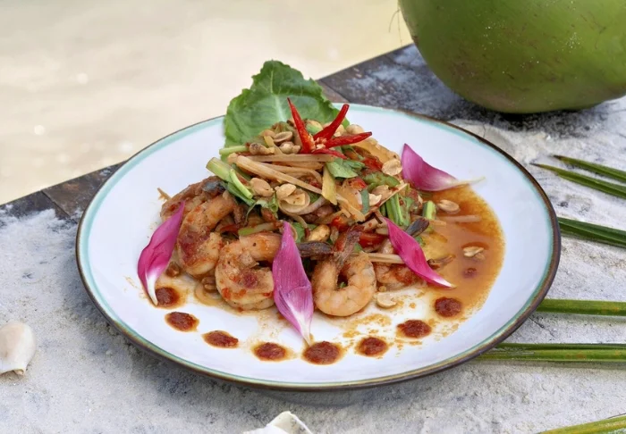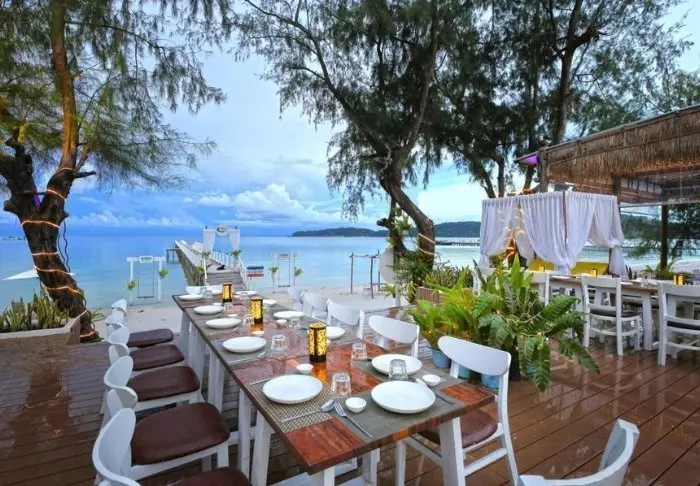 Restauranten serverer både cambodjanske retter og internationale favoritter i en uformel og behagelig atmosfære, der passer godt til feriestemningen.