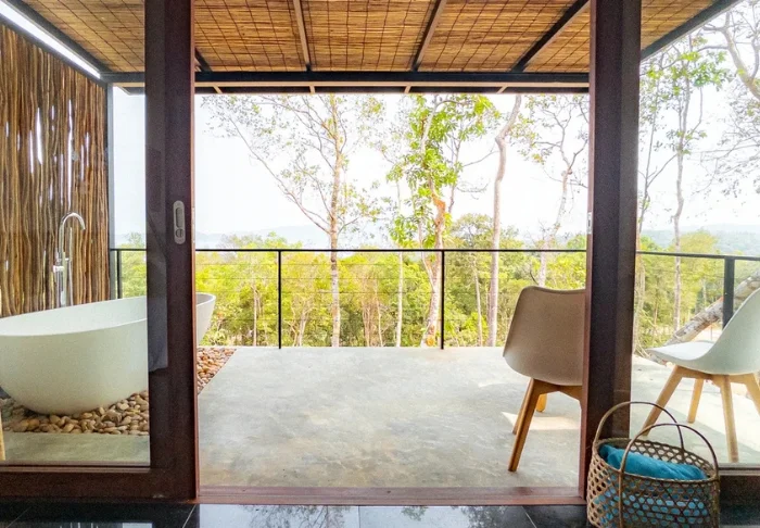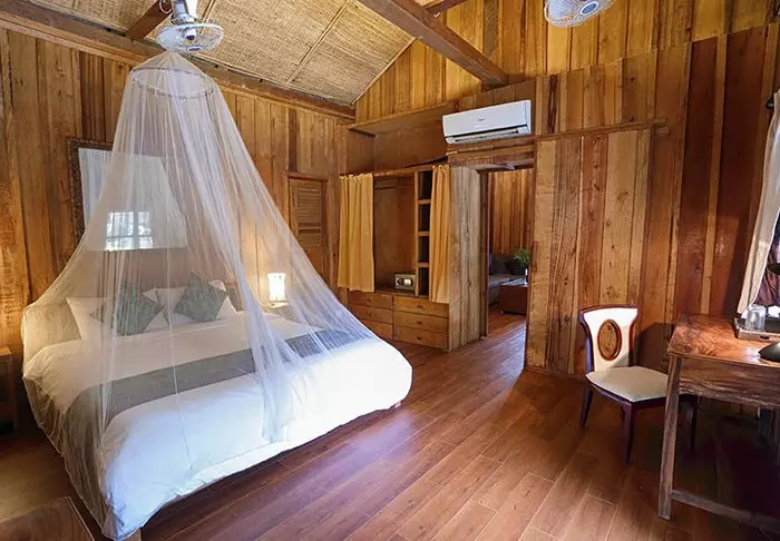 Resortets 33 bungalows er lyse og smagfuldt indrettet med bæredygtige materialer. De er alle udstyret med aircondition, loftvifte, wi-fi, minibar, kaffe- og tefaciliteter, tv og køleskab. En skydedør åbner ud til en privat balkon med bord og stole, hvor du kan nyde roen og de frodige omgivelser. Badeværelserne er udstyret med bruser, hårtørrer og toiletartikler, som er med til at fuldende komfortoplevelsen.