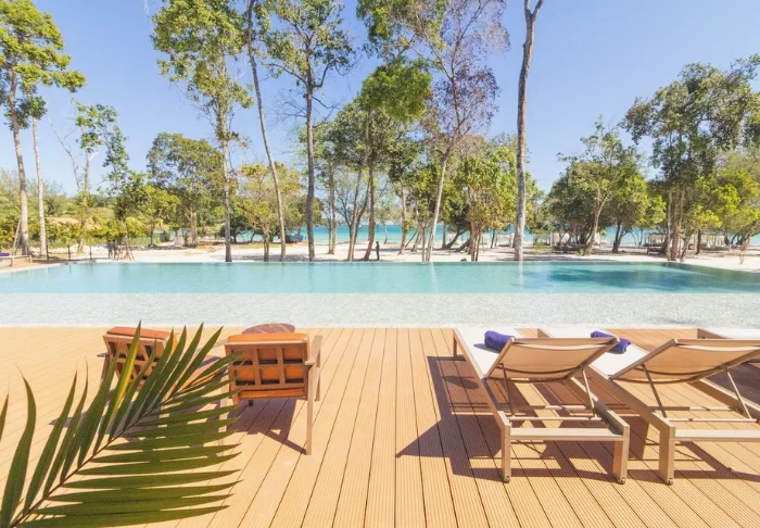 The Royal Sands er beliggende på Koh Rong, den største af de to Koh Rong-øer. Her går alt op i en højere enhed på dette fantastiske barfodsparadis, der ligger direkte ned til Koh Rongs bedste strand Long Beach, også kaldet Sok San Beach. Luksusresortet slog dørene op i 2018 og er gennemført, smagfuldt indrettet med en afslappet atmosfære.