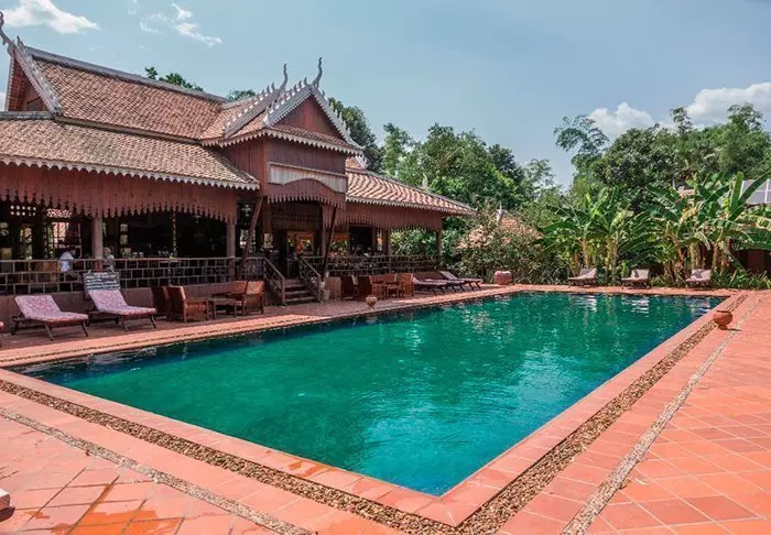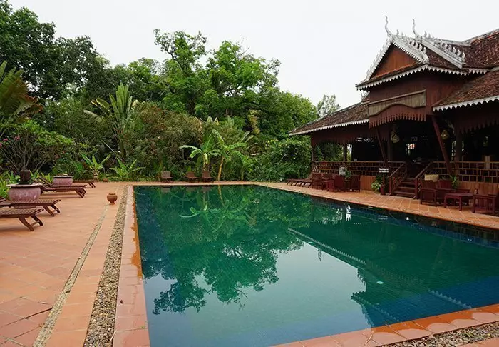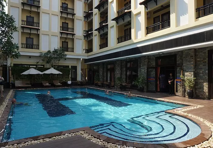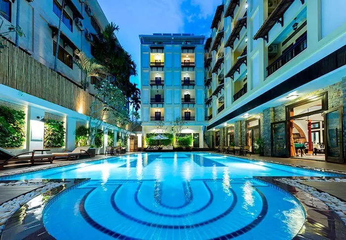 Man får ganske rigtigt fornemmelsen af at befinde sig i en oase, når man træder ind på dette hotel. Kolonistil blandet og med traditionelle khmer dekorationer byder dig velkommen.