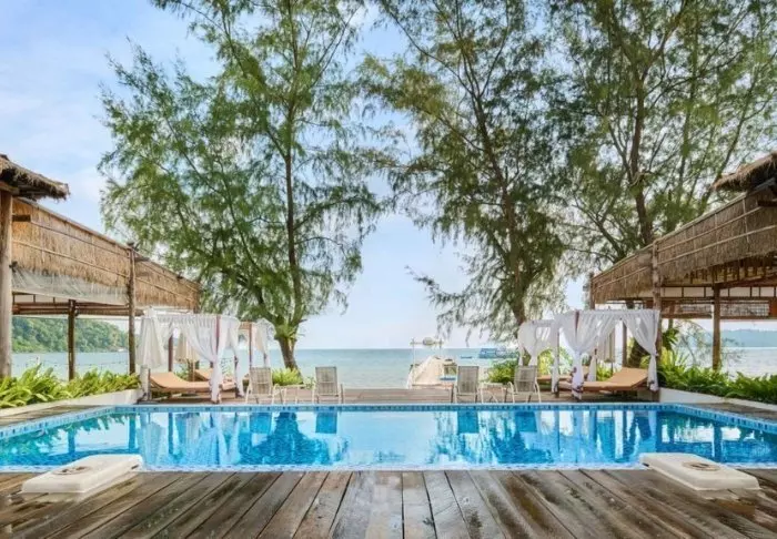 I strandkanten, på den rolige sydvestlige side af øen Koh Rong, ligger det dejlige Sok San Beach Resort. Her leves livet på stranden med sandet mellem tæerne på en af øens fineste strande Long Beach også kaldet Sok San Beach. Resortet har 98 værelser og bungalows.