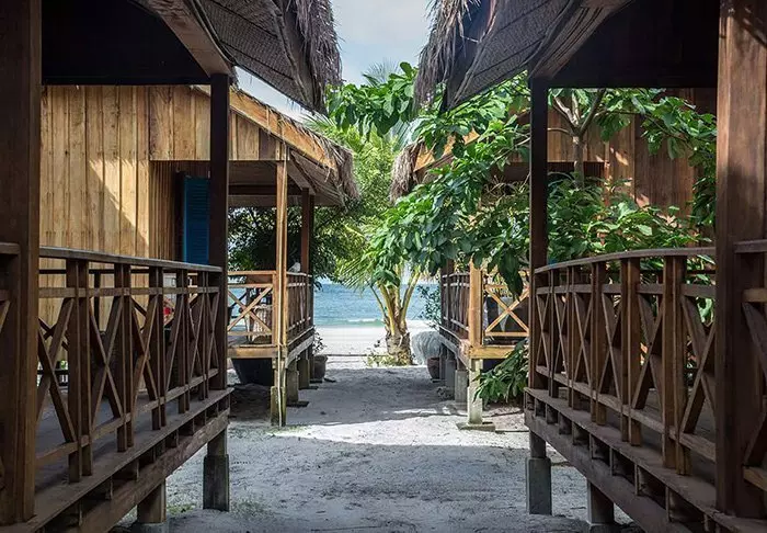Island Center Point ligger direkte ned til den hvide sandstrand ved den rolige bugt Saracen Bay på Koh Rong Sanloem og danner en afslappet ramme om opholdet på en af Cambodias mest stemningsfulde øer. Her bor du med havet lige foran dig og kan nemt kombinere strandliv med små gåture langs bugten, hvor enkle strandbarer og lokale restauranter ligger spredt langs vandkanten.