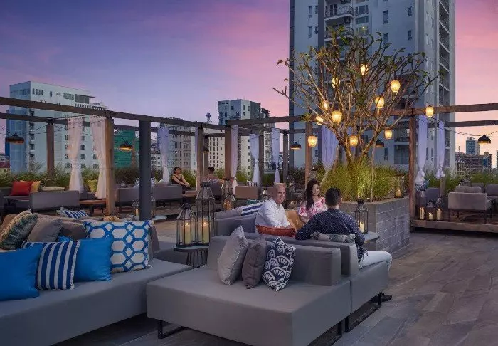Sidst på dagen kan du lægge vejen forbi hotellets hyggelige og stemningsfyldte rooftop bar ”Lantern Bar”. Baren ligger med udsigt over byen og som du nok kan regne ud, er her masser af fine lanterne og levende lys. Nyd en cocktail eller et glas vin, mens solen forsvinder bag Phnom Penhs højhuse og tagterrassen lyses op af lanternernes skær, mens musikken stille spiller i baggrunden.