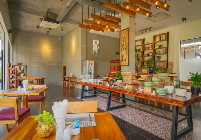 I hotellets restaurant serveres både lokale retter og internationale favoritter i uformelle omgivelser.