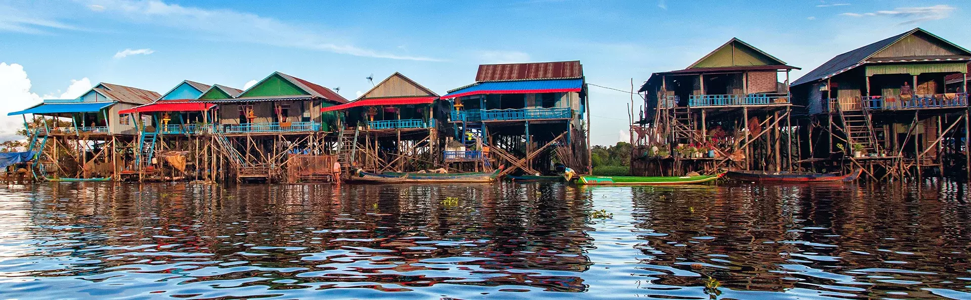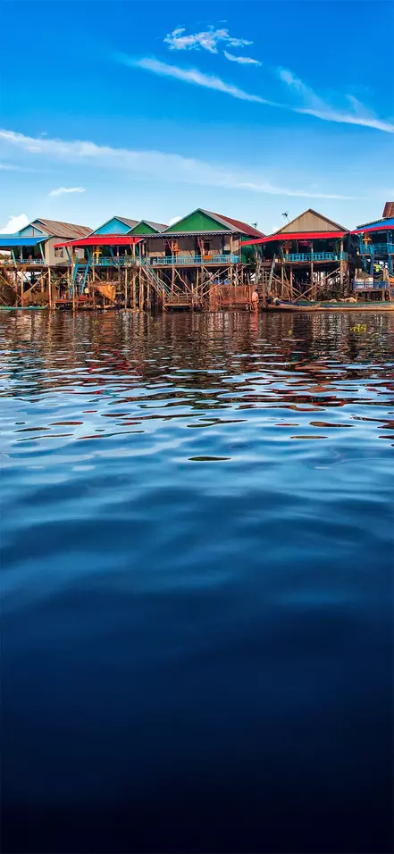 Du ankommer til bredden ved Tonle Sap-søen og går ombord i en båd, der sejler dig til den flydende landsby Kompong Phluk. Her kommer du helt tæt på, hvordan livet leves hos de mange familier, der primært lever af fiskeri. Familierne lever langs søbredden i farverige huse, der står på lange stolper, så de kan klare den høje vandstand i regnsæsonen, hvor landsbyens små gader forvandles til små kanaler. I tørsæsonen med den lave vandstand kan du frit se de høje stolper.