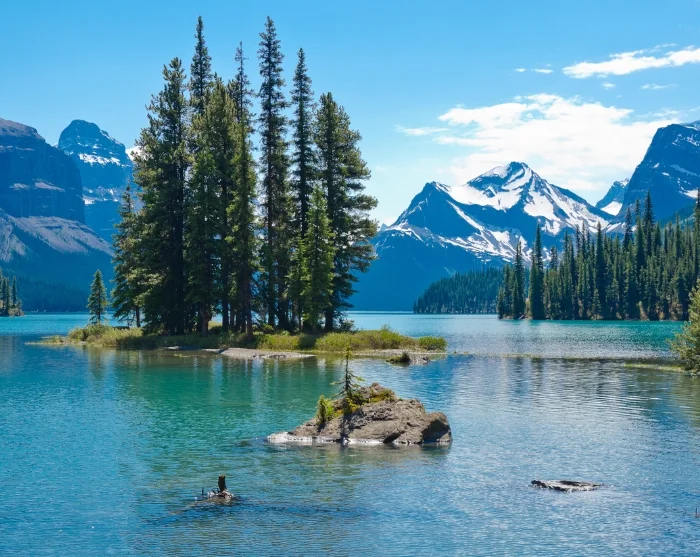 Undervejs på sejlturen kommer du helt tæt på den verdensberømte Spirit Island, som kun er tilgængelig med båd. Her går du i land og har tid til at nyde stilheden, tage billeder og opleve det særlige lys, som har gjort øen til et af de mest fotograferede steder i Canada.