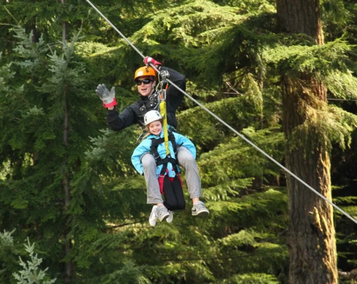 Du svæver hen over tætte nåleskove, stejle dalsider og med det brusende vandløb Fitzsimmons Creek under dig. På klare dage kan du måske endda se gletsjere og snedækkede bjergtoppe i horisonten, et imponerende syn, du sent vil glemme.