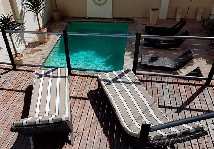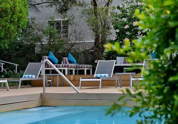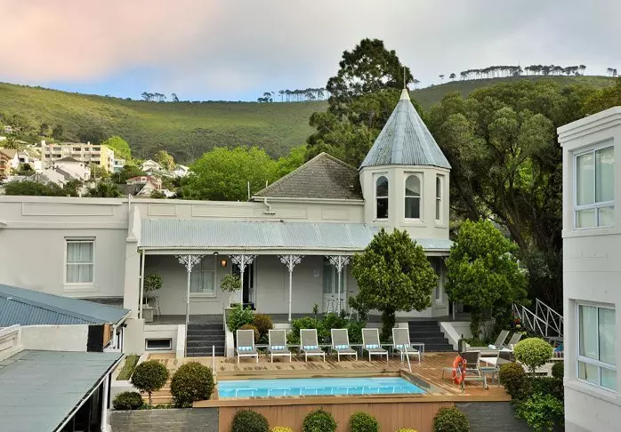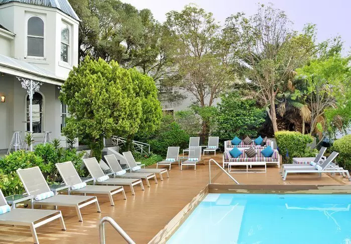 Fra pool-området på det hyggelige 4-stjernede boutique hotel, The Cape Milner har du den flotteste udsigt mod toppen af Table Mountain. Så ved du, du er i Cape Town!