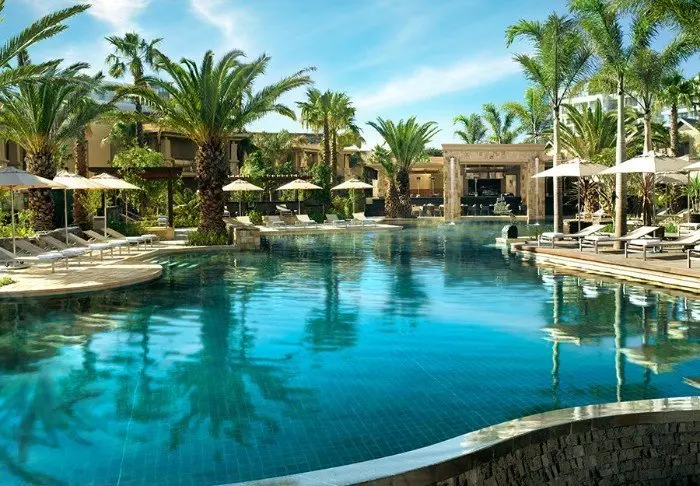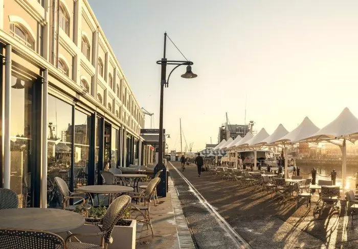 Spaen og swimmingpoolen ligger på sin egen ø i havnen og er nærmest omgivet af en tropisk have – midt i byen. I loungen kan du nyde en cocktail med udsigt til Table Mountain, mens du venter på dit bord på Afrikas eneste Nobu restaurant – den er populær, så bestil bord i god tid.