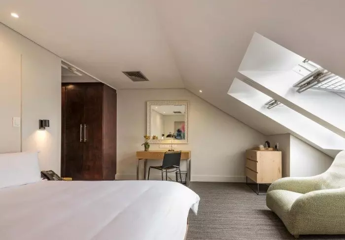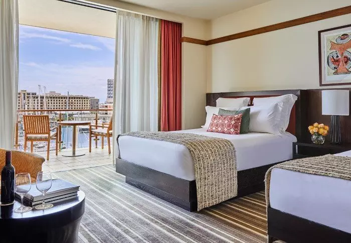 De 94 værelser fordeler sig over 3 etager og har udsigt mod enten havnen, Table Mountain eller mod pladsen foran hotellet. Fælles for dem alle er naturligvis, at Waterfront med alle butikker, restauranter, barer osv. ligger lige uden for døren. Bedre placering fås næsten ikke.