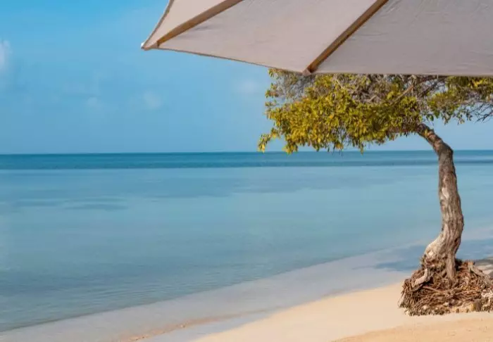 Den private strand med krystalklart vand og hvidt sand er nok hotellets største attraktion. Her kan du hoppe en tur i det lune havvand og efterfølgende nyde solen i de komfortable strandstole.
