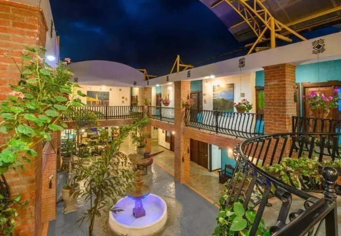 Salento Real Hotel er beliggende midt i Colombias kaffeområde i den hyggelige by Salento, kun 10 km. fra Cocora-dalen. Lige uden for hotellets dør, har du mulighed for at slentre en tur igennem de hyggelige gader med smukke farverige huse og suge alle de forskellige indtryk til dig.