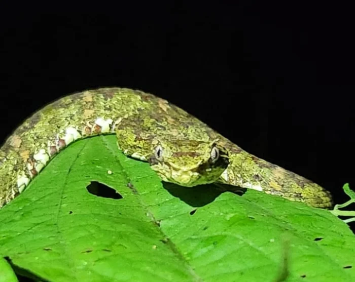 Du vil høre spændende fortællinger om de krybdyr, padder, insekter og edderkopper, der lever i regnskoven – og som ofte kan opleves i nattens stille mørke. Typiske observationer omfatter natsværmere, frøer, sovende fugle, ugler, pungrotter og andre dyr, der holder til i de rolige, midterste lag af trækronerne.