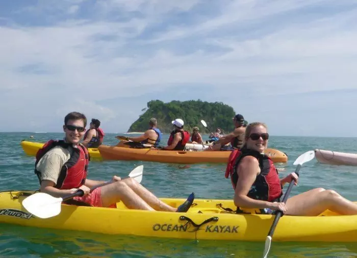 Du bliver hentet på dit hotel og kørt til den sydlige del af stranden Playa Sámara. Her bliver instrueret i, hvordan du sejler i kajak, og får udleveret en redningsvest samt paddel og finder dig til rette i kajakken. Herfra sejler du ud på det åbne hav i en åben dobbeltkajak. Din guide viser vejen ud til den lille ø Chora.
