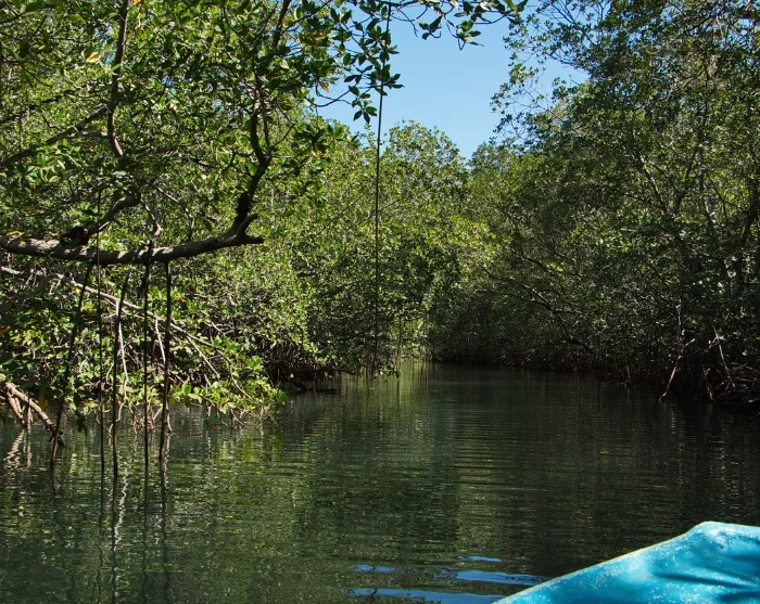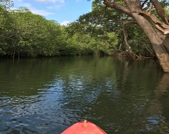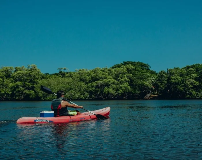Kajakkerne ligger klar ved flodmundingen, hvor du får en grundig introduktion og instruktion, inden turen begynder. Herefter padler du langs flodmundingens bredder og gennem de smalle mangrovekanaler. Undervejs kan du opleve et rigt fugleliv samt leguaner, krokodiller, aber og meget mere.