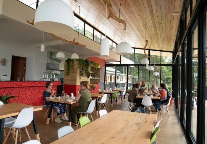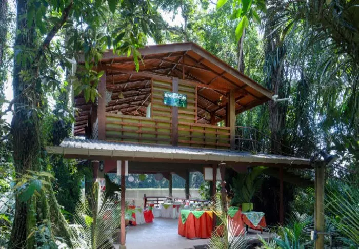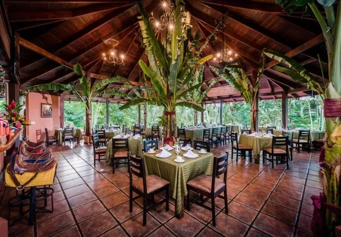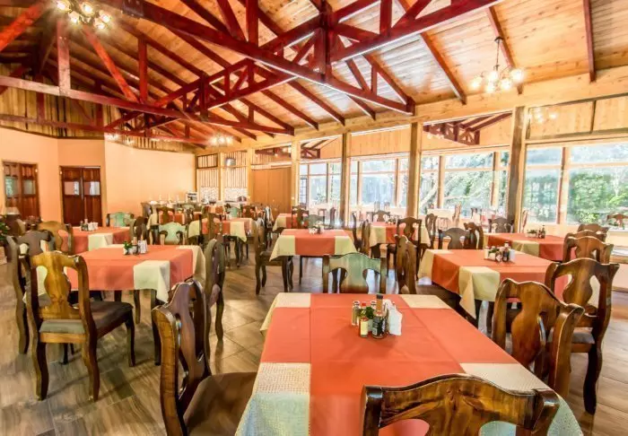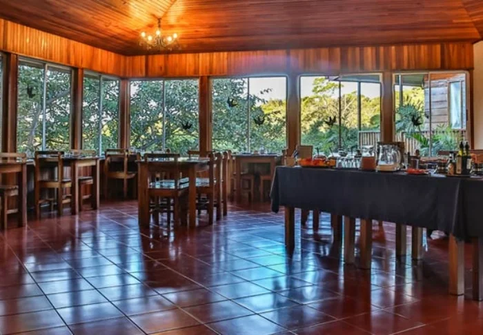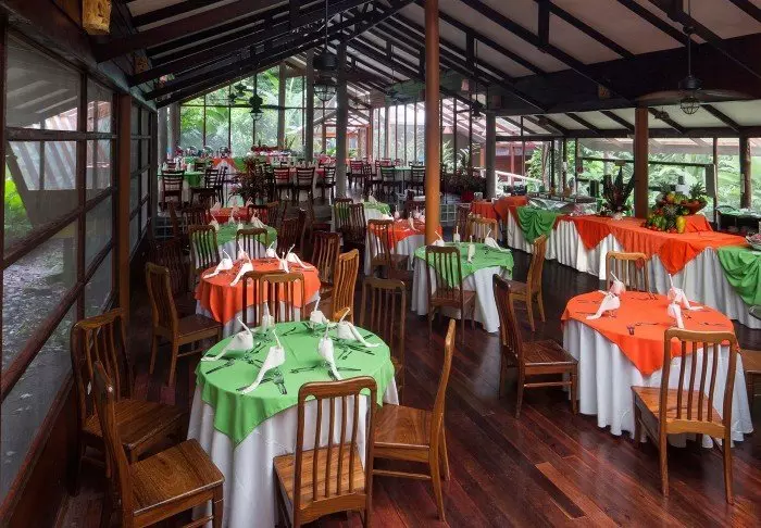 I restauranten kan du bestille både traditionelle costaricanske retter samt europæiske retter tilberedt af lokale ingredienser, mens du nyder udsigten til den frodige natur omkring lodgen. Det er også her, din inkluderede morgenmad serveres.