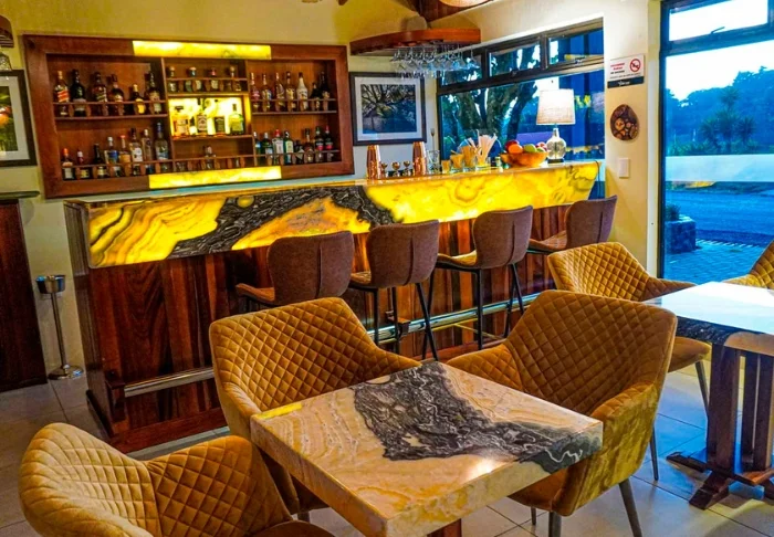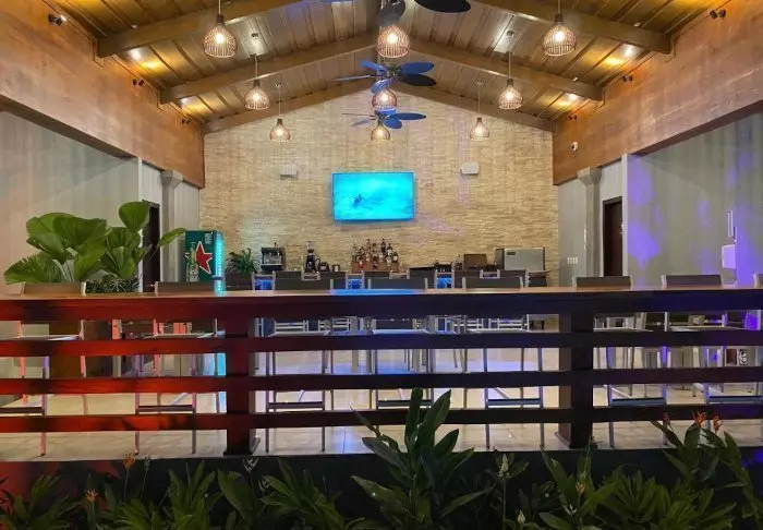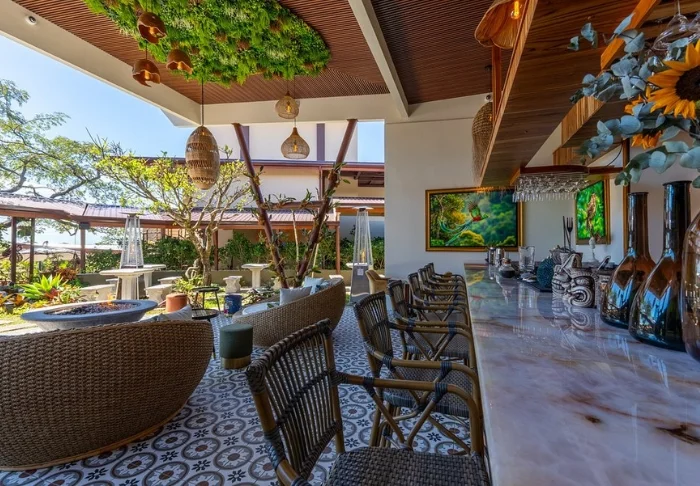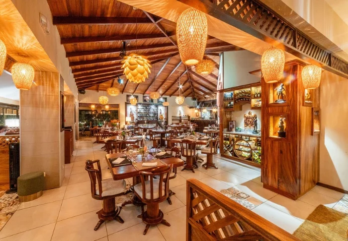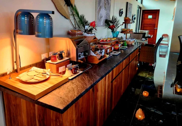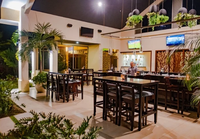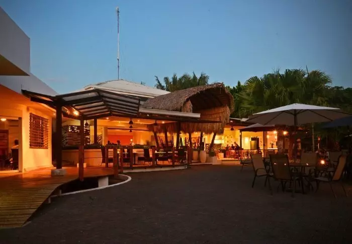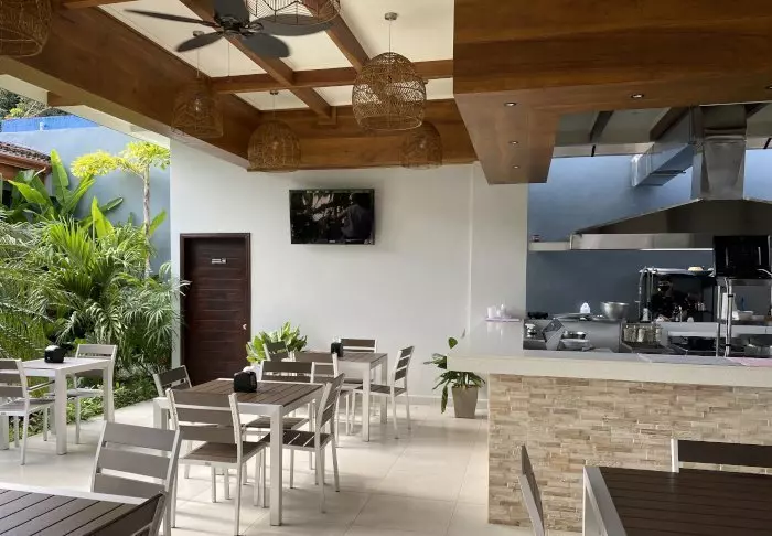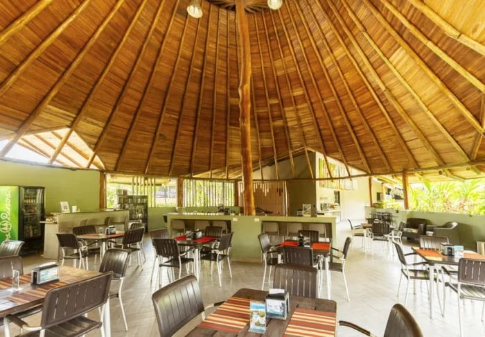 Den hyggelige stråtækte restaurant og bar byder på tropisk morgenmad, forfriskende drinks og retter fra det argentinske køkken kombineret med costaricanske ingredienser og smagsoplevelser.