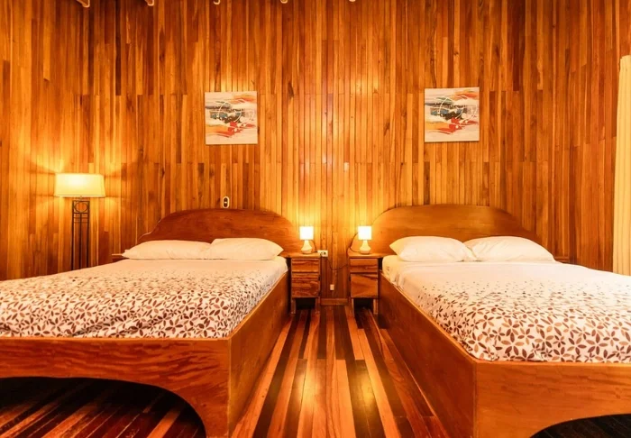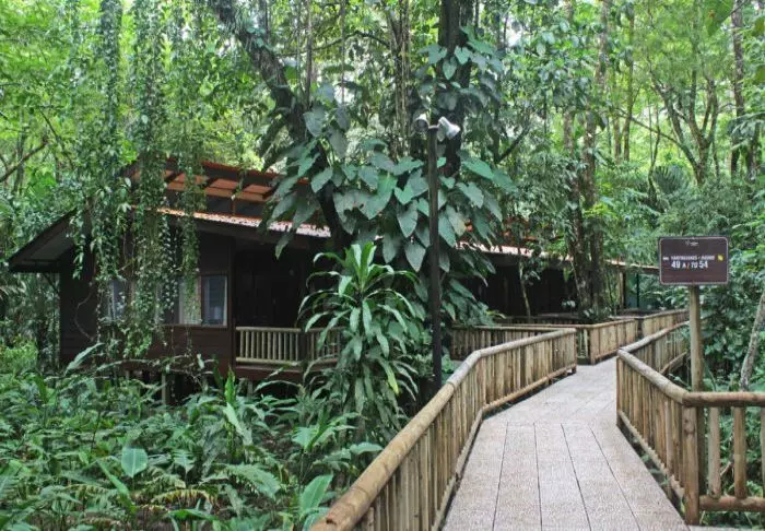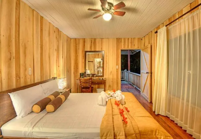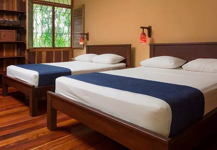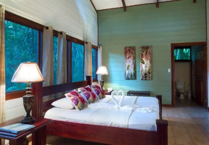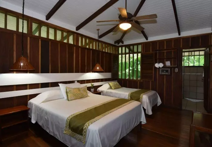 Lodgen bestræber sig på at skabe en oplevelse så tæt på naturen som muligt, derfor er der ikke TV, radio eller aircondition på værelserne. De 56 rustikke værelser er bygget i en traditionel caribisk stil med mørkt træ, der blender naturligt ind i de grønne omgivelser. Værelserne har eget badeværelse udstyret med hårtørrer og toiletartikler. Der er ventilator i loftet og net for vinduerne, der giver en naturlig brise og giver dig mulighed for at lytte til regnskovens lyde imens du falder i søvn.