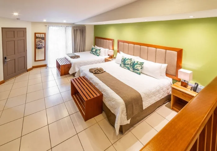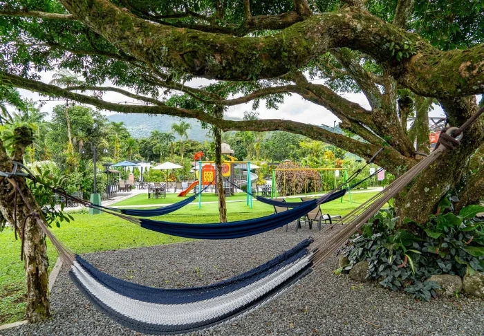 På hotellets område finder du to udendørs swimmingpools, hvor du kan slappe af og køle dig ned efter en dag fuld af oplevelser. De tropiske haver danner en rolig og stemningsfuld ramme for afslapning og naturoplevelser.