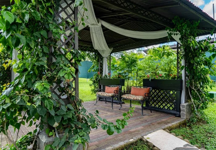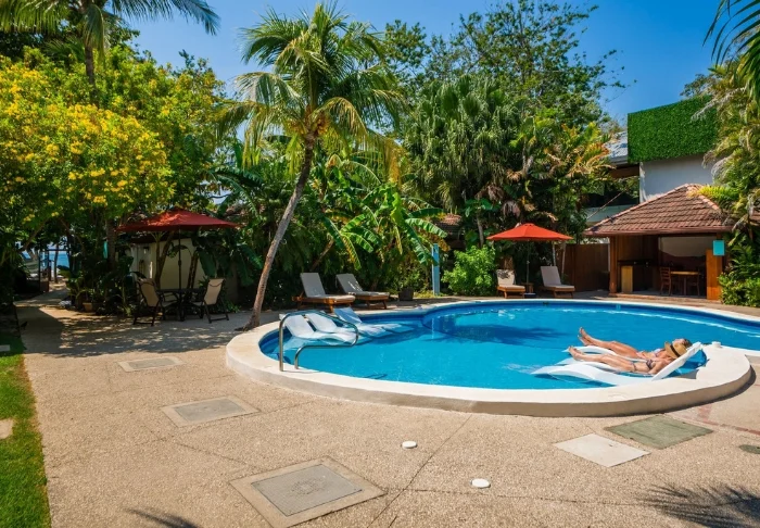 Her bliver du budt velkommen ind i en afslappende atmosfære, som inviterer til følelsen af at være i harmoni med naturen. Hotellet er omgivet af frodig regnskov og har et hyggeligt pool-område, hvor du kan tage en forfriskende dukkert eller nyde en kold drink på en solseng omgivet af palmer og eksotiske blomster. Det er et lille hotel med blot 17 værelser, som alle er udstyret med aircondition, loftvifte, minibar, værdiboks, hårtørrer, TV, kaffe/te-faciliteter og eget badeværelse.