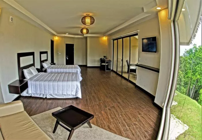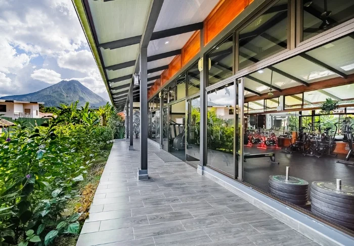 Der er en swimmingpool fyldt med naturligt kildevand fra vulkanen. Der er 54 værelser, som alle har en lille veranda hvor man kan nyde udsigten til vulkanerne og haciendaen. På værelset er der aircondition, saftety box og TV.