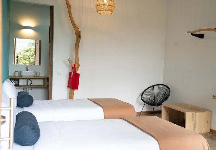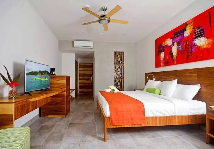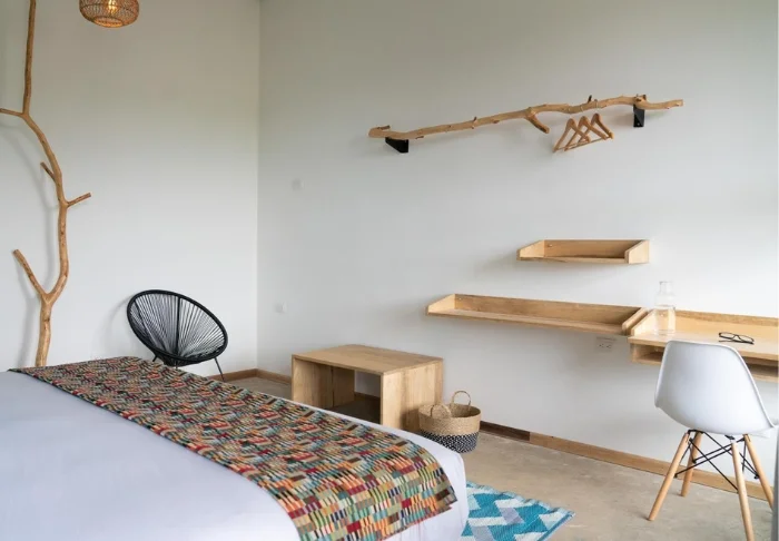 Resortet har blot 38 værelser, som er indrettet i minimalistisk costaricansk stil og udstyret med aircondition, loftsvifte, wi-fi, tv, sikkerhedsboks, kaffefaciliteter og eget badeværelse med toiletartikler. Til hvert værelse hører også en hyggelig lille udendørs balkon.