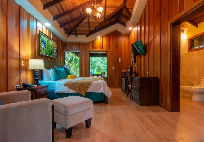 Hotellets værelser er hovedsageligt lavet af træ og indrettet i naturlige farver med grønne nuancer. Alle værelser er udstyret med aircondition, kabel-tv og minikøleskab, samt privat badeværelse med hårtørrer. Desuden har hvert værelse sin egen lille overdækkede veranda med et par stole, hvor du kan slappe af og nyde de frodige omgivelser – og måske endda spotte en farverig sommerfugl eller kolibri.