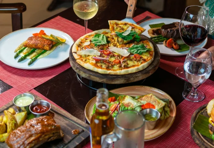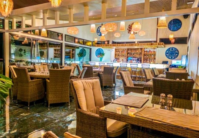 Resortets restaurant serverer både lokale- og internationale retter. Du vælger selv om det skal være som buffet eller a la carte. Derudover er der også en poolbar, hvor du kan nyde en forfriskende drink.