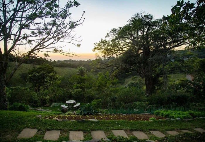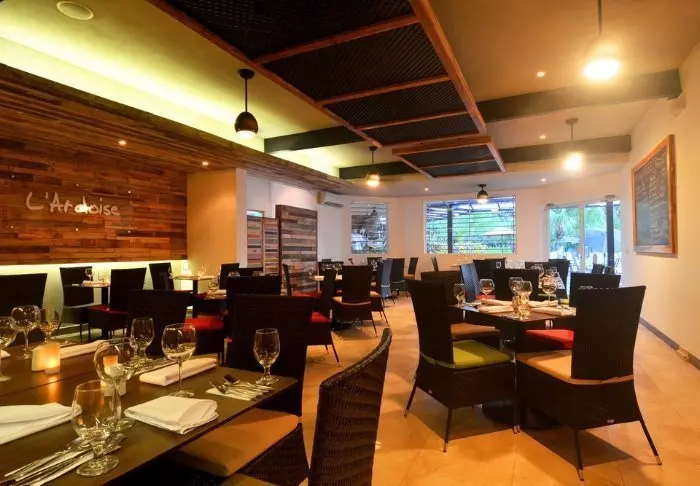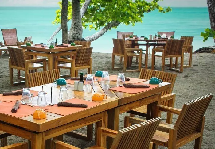 Resortet har egen restaurant, der serverer en kombination af lokale og internationale retter, hvor mange af ingredienserne er dyrket i egen køkkenhave.