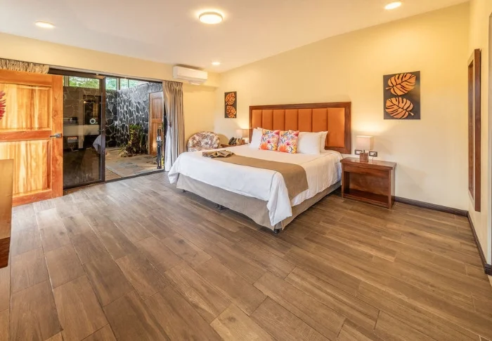 Der er i alt 82 charmerende træhytter, som er fordelt rundt på den 150 hektar store grund. Hytterne er alle udstyret med aircondition, værdiboks, tv, minibar, te- og kaffefaciliteter samt wi-fi. Derudover har alle hytter to terrasser, den ene med udsigt til Arenal-vulkanen og den anden med direkte adgang til den frodige have med tropiske blomster.