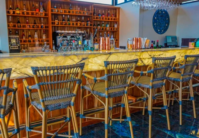 Tæt ved pool-området ligger baren Chelonia, hvor du kan nyde en forfriskende drink, øl eller sodavand. Der er også en lille kaffebar ved receptionen, hvor de også har et lille selvbetjente bibliotek.