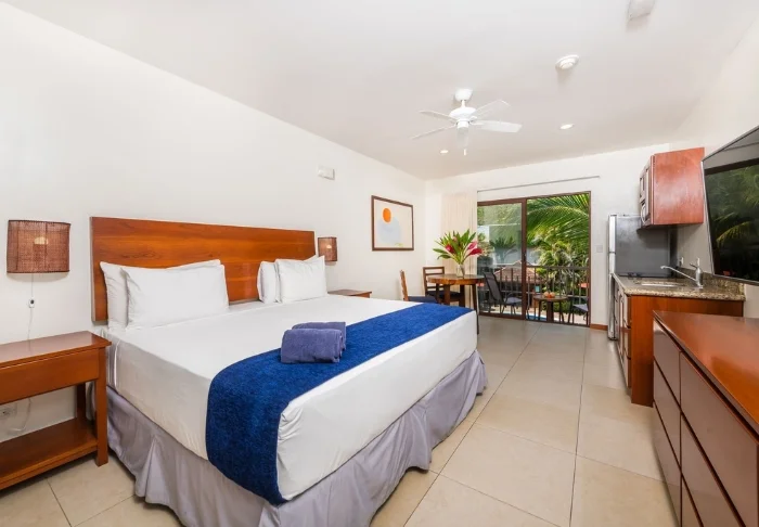 Hotellet har ikke egen restaurant, hvilket giver dig friheden til at udforske Tamarindos mange spisesteder. Din inkluderede morgenmad leveres til værelset og består af brød, smør, marmelade, frugt, kaffe og juice, mens frokost og aftensmad kan nydes på de nærliggende strandbarer og restauranter – eller tilberedes i dit eget tekøkken, hvis du foretrækker en mere afslappet aften.